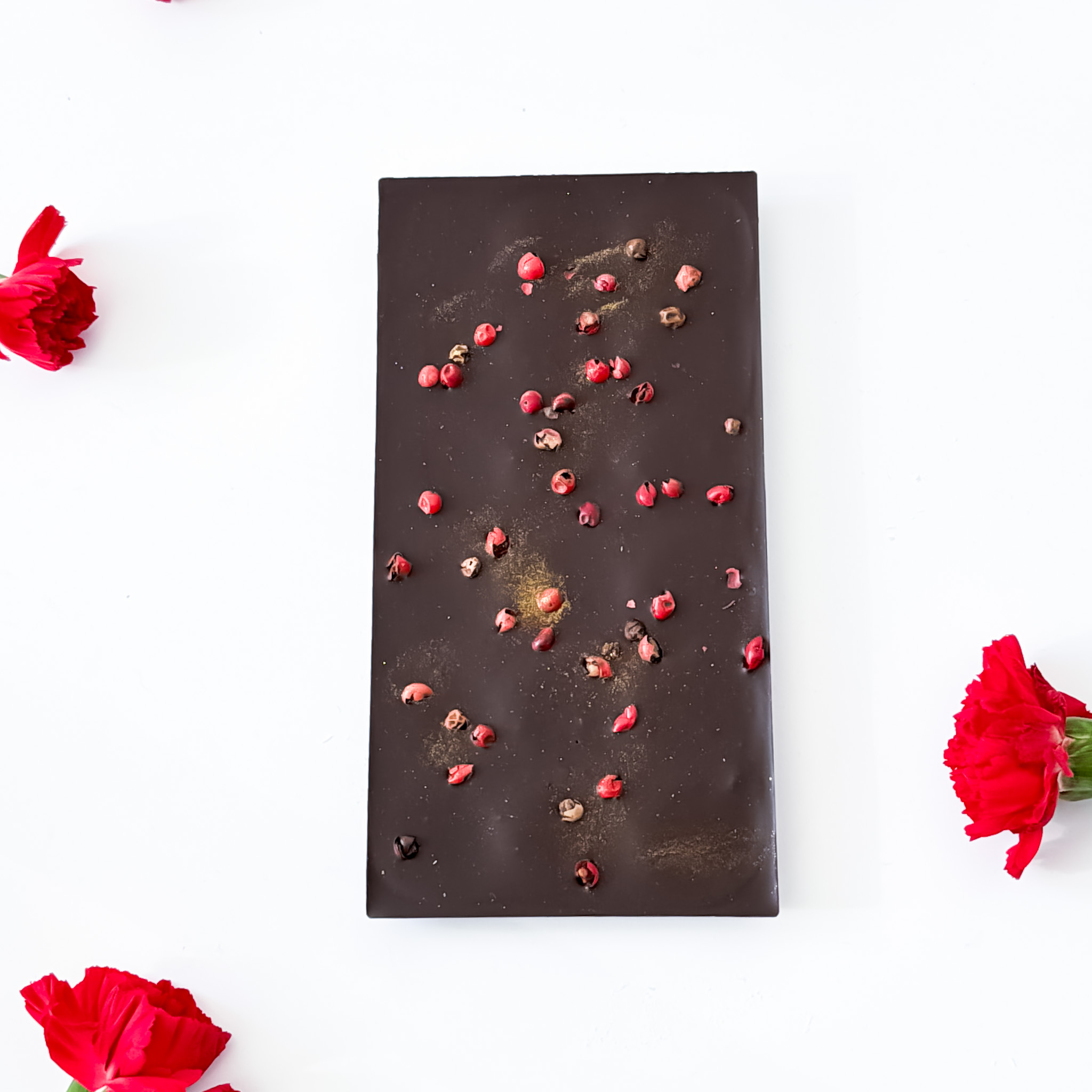 Zaskakujący profil smakowy: Różowy pieprz nadaje czekoladzie lekkości dzięki swoim żywicznym, niemal kwiatowym aromatom, które idealnie balansują intensywność ciemnego kakao.
