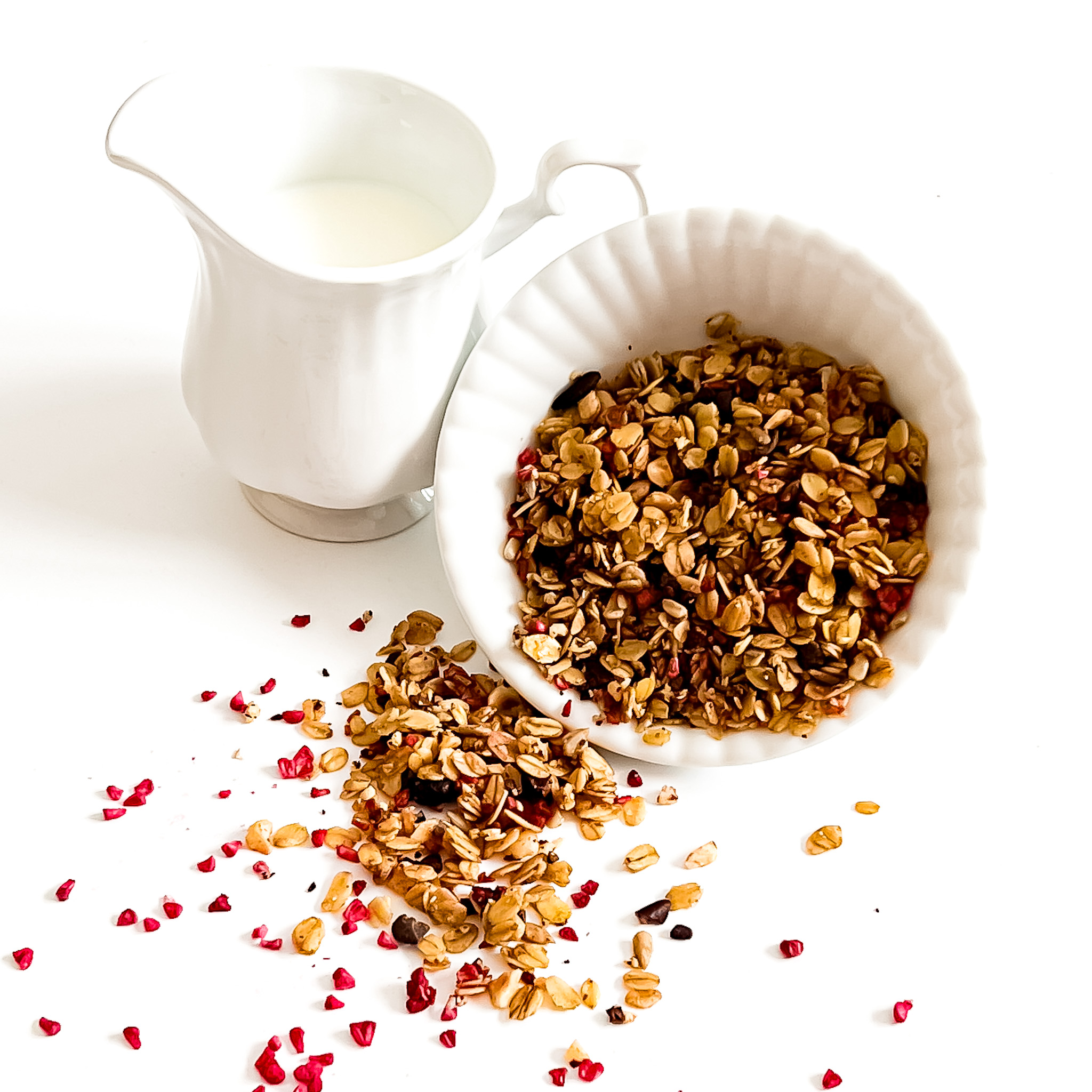 Bogactwo tekstur: Połączenie chrupiących orzechów laskowych i pestek słonecznika z liofilizowaną maliną zapewnia różnorodność doznań w każdym kęsie.